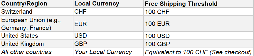 We are proud to ship worldwide! Shipping costs and free shipping thresholds are applied at checkout based on your delivery country and currency.